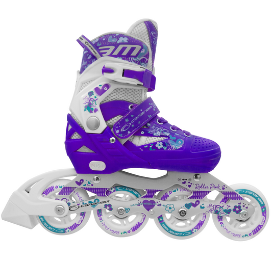 Promo: Roller Pink (Blanco x Morado) + Casco Sonic Fucsia (Talla M) + Kit de Protección C2 (Talla: M / L) + 1 Par de Cordones Lúmino