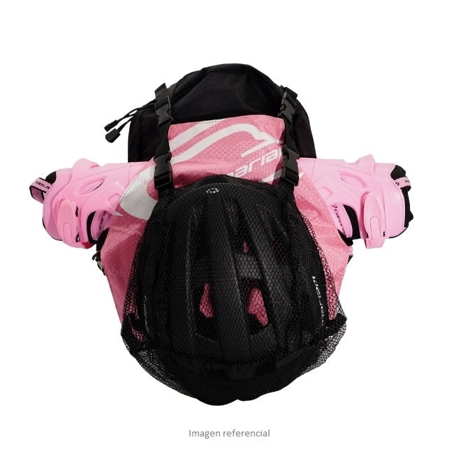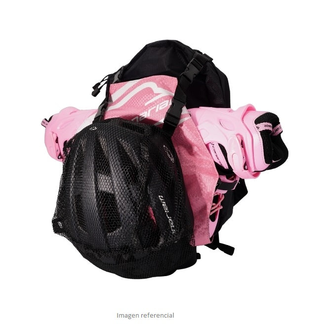 Diseñado para llevar material liviano, casco, ruedas, ropa deportiva y patines. El maletín malla soporta las tallas de patín pequeñas.